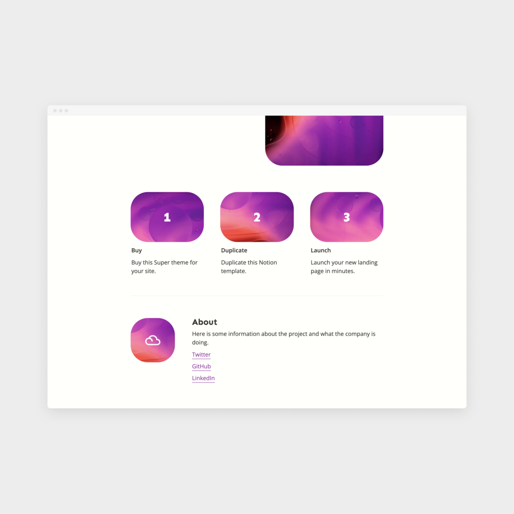 A minimal landing page theme for Notion and Super sites.